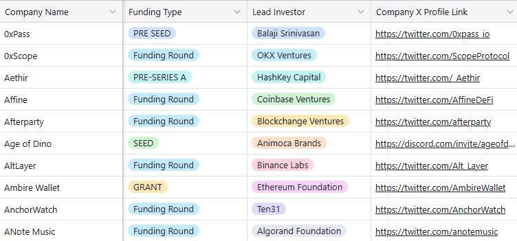 Crypto projects who've received funding & VC contacts